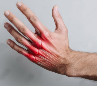 Arthritis in the hand or wrist can lead to chronic pain, stiffness, swelling, and reduced range of motion. Osteoarthritis and rheumatoid arthritis are the most common types affecting these joints.